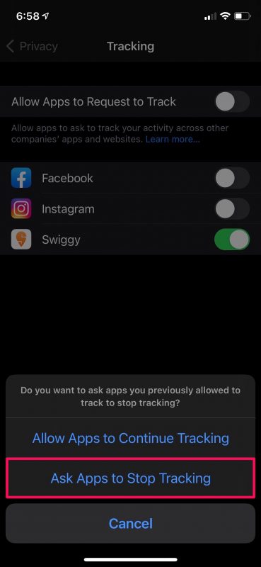 لذلك ، إذا كنت تتطلع إلى تجنب هذه النوافذ المنبثقة تمامًا ، فسيلزمك تحديد موقع التبديل العام لميزة تتبع التطبيق وتعطيله. دعنا نتحقق من حظر هذه النوافذ المنبثقة لتتبع التطبيقات غير المرغوب فيها على جهاز iPhone و iPad.